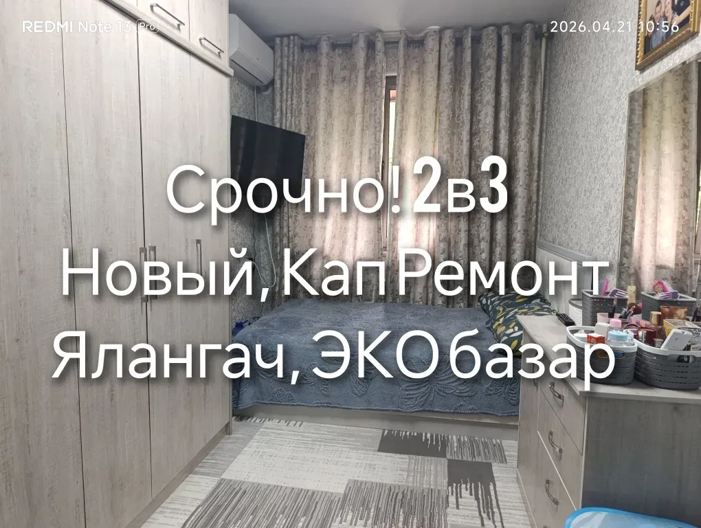 Двухкомнатная! 2этаж! Ялангач, ЭКО базар; Новый, Евро, Капитальный ремонт - все делали для себя! 46м2;раздельные комнаты + мебель остаётся; спальный, зелёный массив; срочно! Реальному клиенту торг уместен;